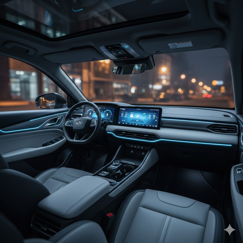 Chery EQ7 dilengkapi berbagai fitur teknologi modern yang mendukung kenyamanan dan keselamatan berkendara. Sistem infotainment digital, panel instrumen futuristik, serta fitur bantuan pengemudi menjadi bagian penting dari pengalaman berkendara EQ7.